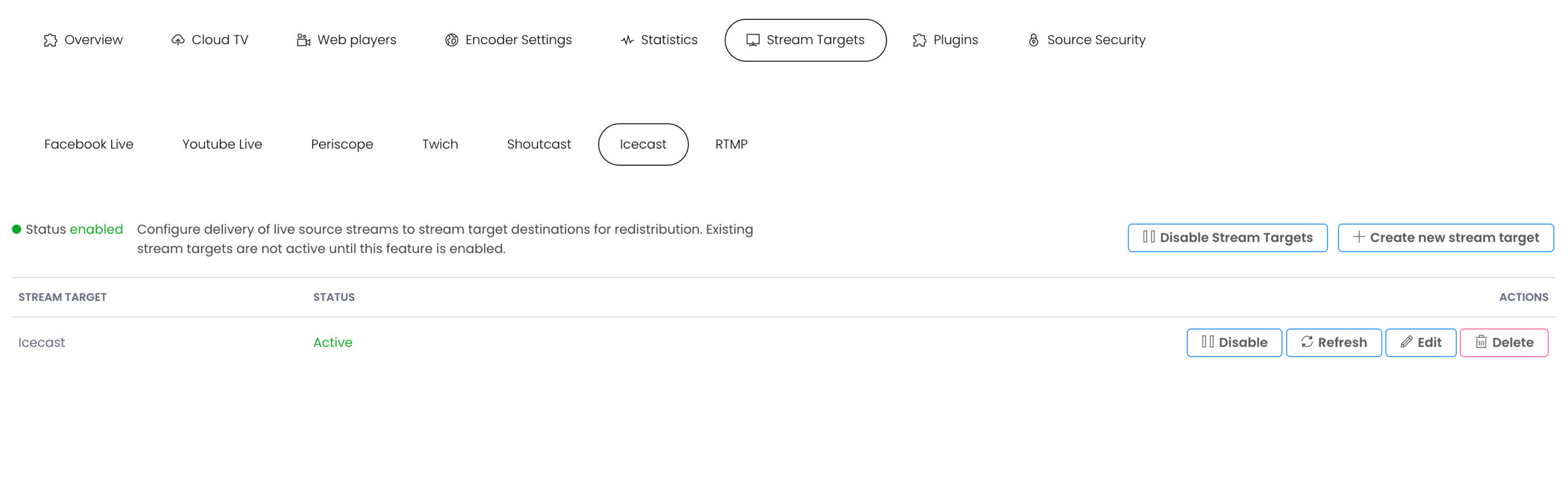 - 2 Enable Stream Targets.