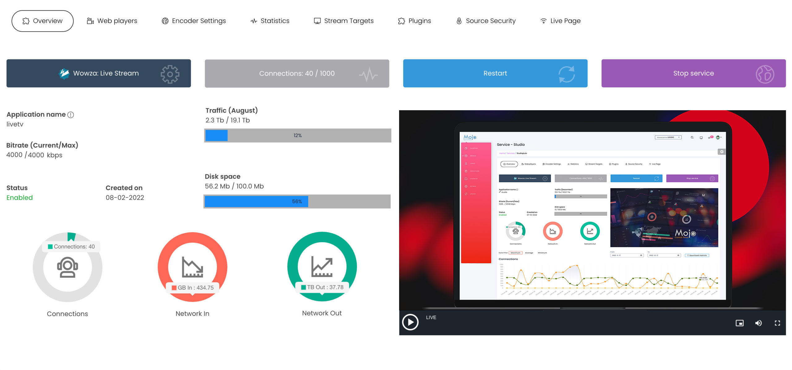 For detailed reference information regarding the overview of your live stream, please consult the: Reference Stream Overview