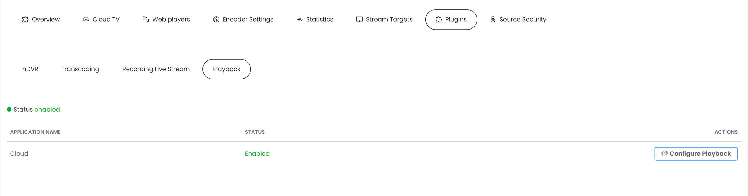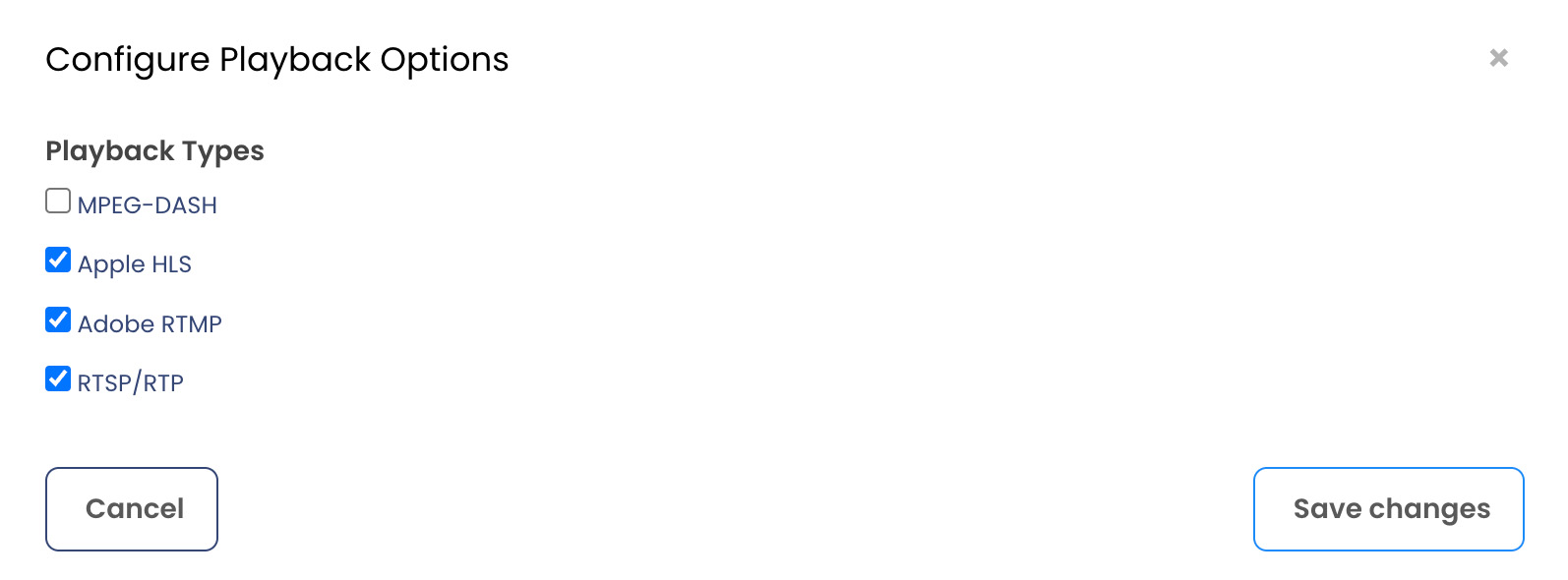 Enable streaming to specific endpoints by selecting one or more of the following Playback Types: